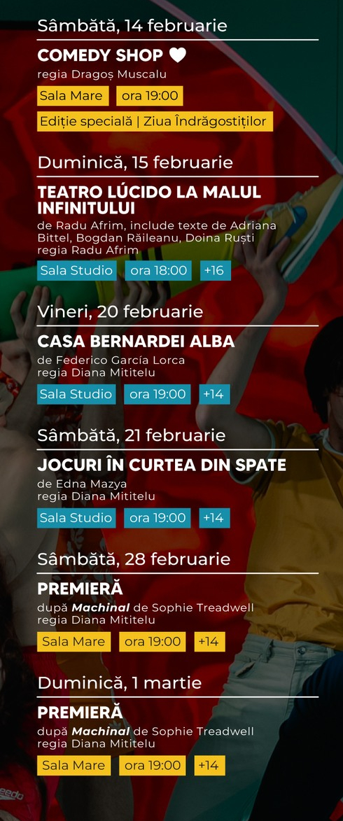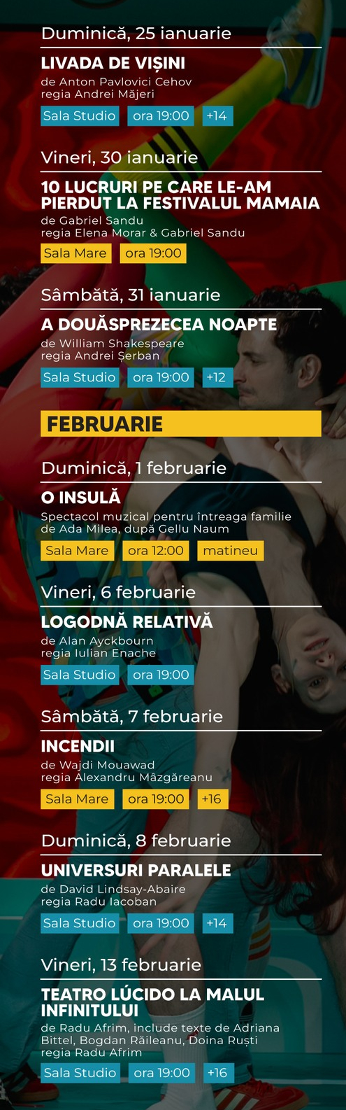 Erwin Șimșensohn, director general: Avem (aproape) toate mega-hiturile ultimilor doi ani, Teatro Lucido a lui Afrim, Livada lui Măjeri, Incediile provocate de Mazgareanu, Casa Bernardei și a Dianei Mititelu, A 12-a noapte a lui Șerban, Insula Adei Milea, cele 10 lucruri pierdute la Festivalul Mamaia dar regăsite de echipa Gabi Sandu și Elena Morar, dar avem în program și spectacole excelente care se regăsesc de ceva timp în repertoriul teatrului, care nu trebuie sub niciun chip ratate, precum Jocuri în curtea din spate, hitul de debut și premiat al Dianei, excelenta dramă Universuri paralele a lui Iacoban, show-ul de comedie rebranduit și orchestrat de Muscalu!