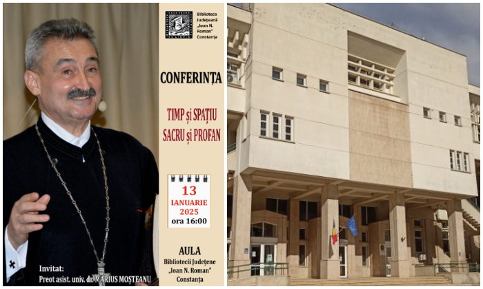 Biblioteca Județeană „Ioan N. Roman” Constanța va găzdui luni, 13 ianuarie 2025, cea de-a treia conferință a Părintelui Marius Moșteanu – „Timp și Spațiu, Sacru și Profan”. Conferința va avea loc de la ora 16:00, în Aula Bibliotecii.