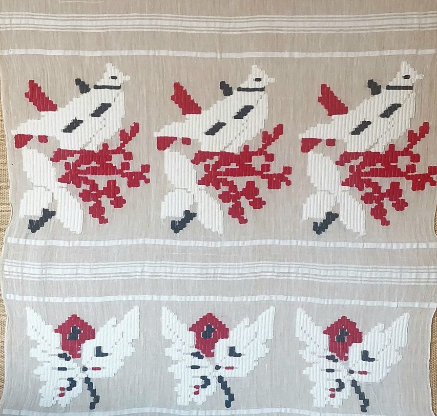 În imaginea de mai sus este un ștergar din Dobrogea, cu motive avimorfe (cuci), aflat în patrimoniul Muzeului de Artă Populară Constanța. Ștergarul a fost confecţionat în primii ani ai secolului al XX-lea, iar prin Ordinul de clasare nr. 2154 / 21.03.2014, poziţia 19, emis de Ministrul Culturii, obiectul a fost declarat bun aparţinând patrimoniului cultural-naţional, fiind clasat în categoria juridică TEZAUR.