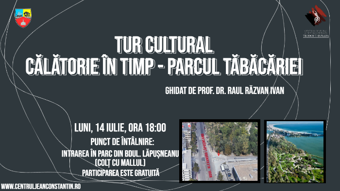 Centrul Cultural Județean Constanța „Teodor T. Burada” vă invită să luați parte, cu PARTICIPARE GRATUITĂ, la evenimentul cultural-educativ „Tur Cultural – Călătorie în timp (Parcul Tăbăcăriei)”, organizat în colaborare cu prof. dr. Răzvan Raul Ivan.