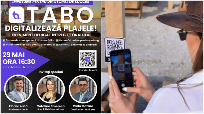 Cu TABO, turiștii își pot rezerva din timp șezlongurile dorite, evitând drumurile lungi pe plajă și stresul că nu vor găsi loc. Odată ajunși pe plajă, tot ce trebuie să facă este să scaneze codul QR de pe șezlong, iar meniul apare instant pe telefon – de unde pot comanda băuturi sau gustări, fără să mai aștepte ospătarul 15-30 minute” susțin cei trei reprezentanți ai deținătorului aplicației, Răducu Mazăre – Destination Marketer, Florin Leucă – Business Coach și Cătălina Smereca – Specialist Comunicare.