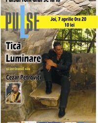 Mai multDetailsJoi, 7 aprilie 2011, Club PuLse va invita la concert folk cu Tica Luminare si Cezar Petrovici. Pretul biletului este ...