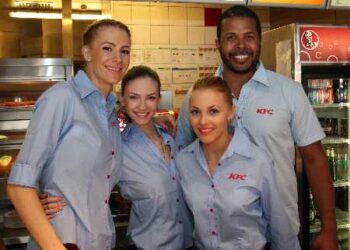 Cabral, Roxana Ciuhulescu, Andreea Ibacka si Madalina Draghici au servit pret de cateva ore clientii KFC